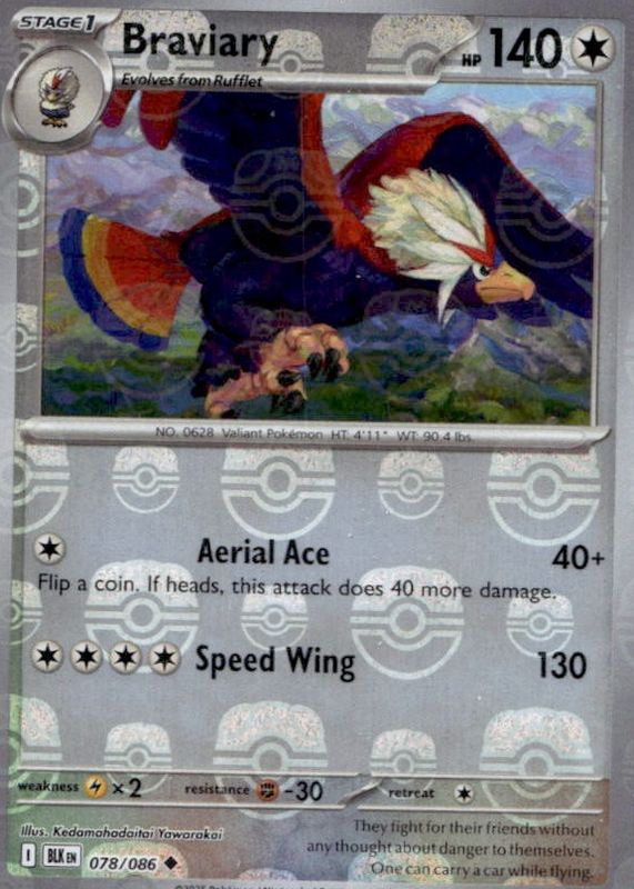 Braviary 2025 Scarlet & Violet: Black Bolt #078/086 Master Ball Reverse Holo RAW TCG (NEAR MINT) Price Guide