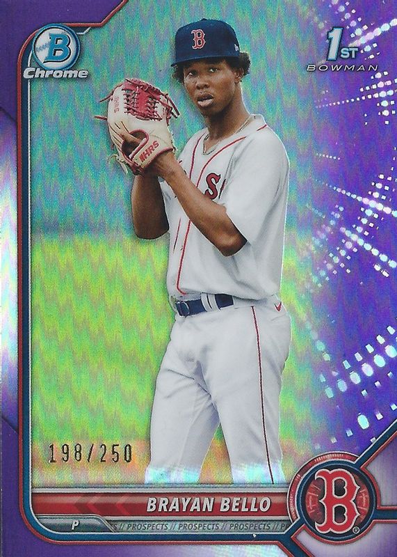 Best Prices Available For Sale of Brayan Bello 2022 Bowman #BCP-107 Chrome Prospects - Purple Refractor /250 (1st)