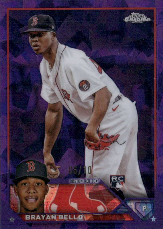 The Brayan Bello 2023 Topps Chrome Sapphire Edition #185 Purple /10 Rookie card in Raw condition has not changed in price in the last 30 days and was last sold for $50.00 .