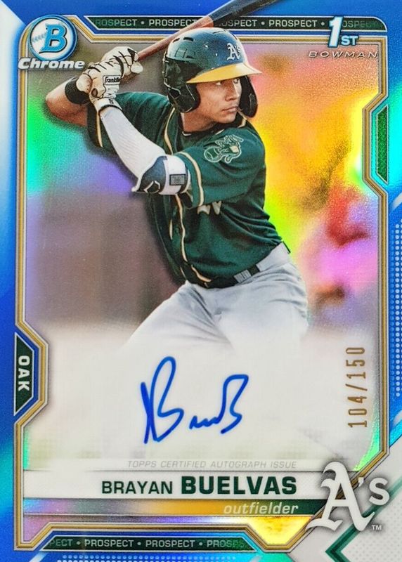 1st Bowman Chrome AUTO RC 2021 Brayan Buelvas BLUE REFRACTOR /150! ATHLETICS...