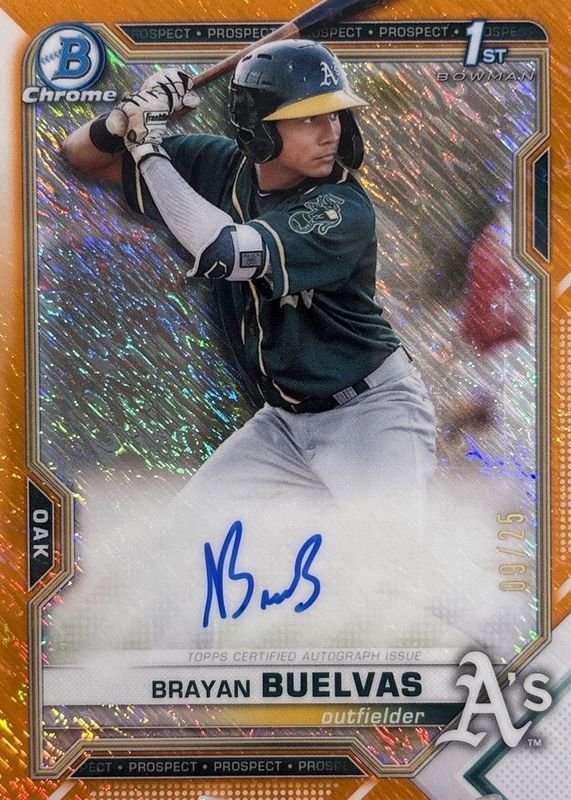 Brayan Buelvas 2021 Bowman #CPA-RDC Chrome Prospect Auto - Orange Shimmer Refractor /25 (1st) Rookie RAW Price Guide
