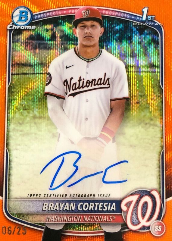2025 Bowman Chrome Brayan Cortesia 1st Orange Wave Refractor Auto /25 Nationals