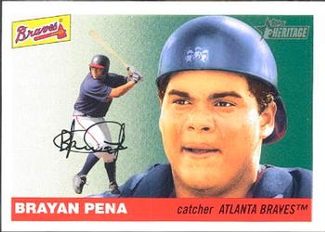 The Brayan Pena 2004 Topps Heritage #401 Base Rookie card is 1 of 4 Brayan Pena's card variations in the 2004 Topps Heritage set being tracked by Sports Card Investor, including Chrome /1955, Chrome Refractor /555, and Chrome Black Refractor /55.