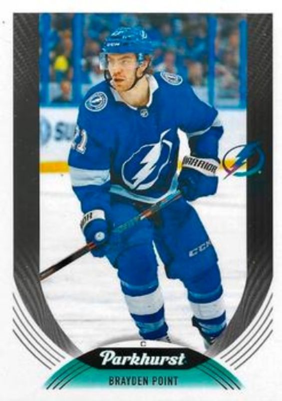 The Brayden Point 2020 Upper Deck Parkhurst #28 Base card is 1 of 6 Brayden Point's card variations in the 2020 Upper Deck Parkhurst set being tracked by Sports Card Investor, including Gold, Silver, Bronze, Gold Foil, and Tallboys.