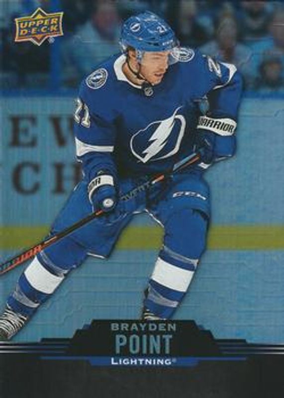 The Brayden Point 2020 Upper Deck Tim Hortons #21 Base card is 1 of 2 Brayden Point's card variations in the 2020 Upper Deck Tim Hortons set being tracked by Sports Card Investor, including Timbits Autographs /100.