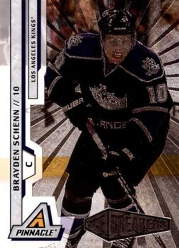 The Brayden Schenn 2010 Pinnacle #204 Rink Collection Rookie card is 1 of 9 Brayden Schenn's card variations in the 2010 Pinnacle set being tracked by Sports Card Investor, including Base /299, Artists Proofs, City Lights Materials /499, Threads /499, and City Lights Signatures /35.