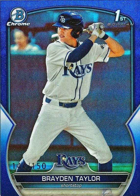 The Brayden Taylor 2023 Bowman Draft #BDC-60 Chrome - Blue Refractor /150 (1st) card in Raw condition has not changed in price in the last 30 days and was last sold for $5.99 .