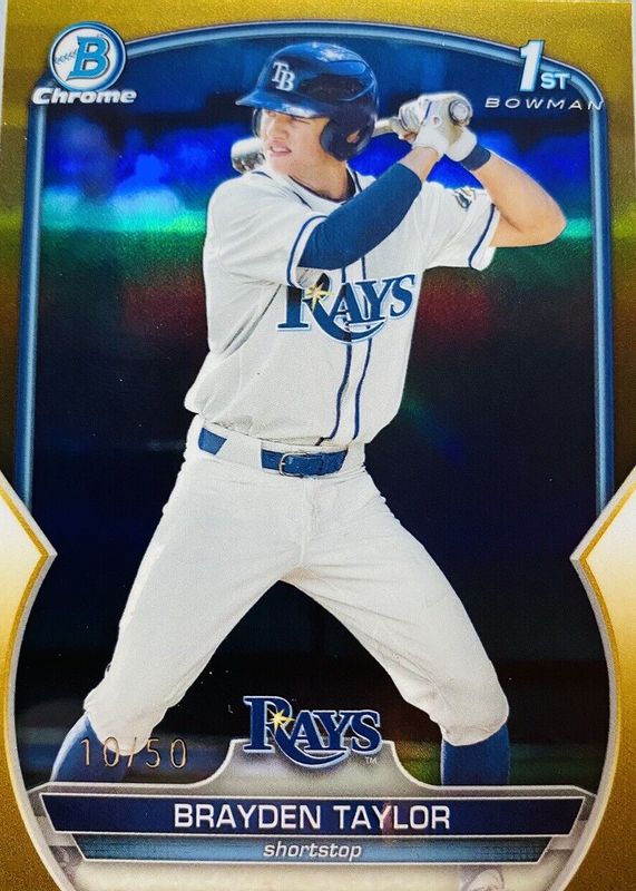 2023 Bowman Draft Brayden Taylor Chrome Gold Refractor 1st Prospect #29/50 Rays
