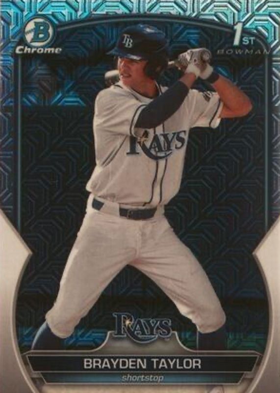 This card is 1 of 45 Brayden Taylor's card variations in the 2023 Bowman Draft set being tracked by Sports Card Investor, including Chrome (1st), Chrome Image Variation (Fielding), Chrome - Lunar Glow Refractor (1st), Chrome - Pearl Refractor (1st), and Chrome - Refractor (1st).