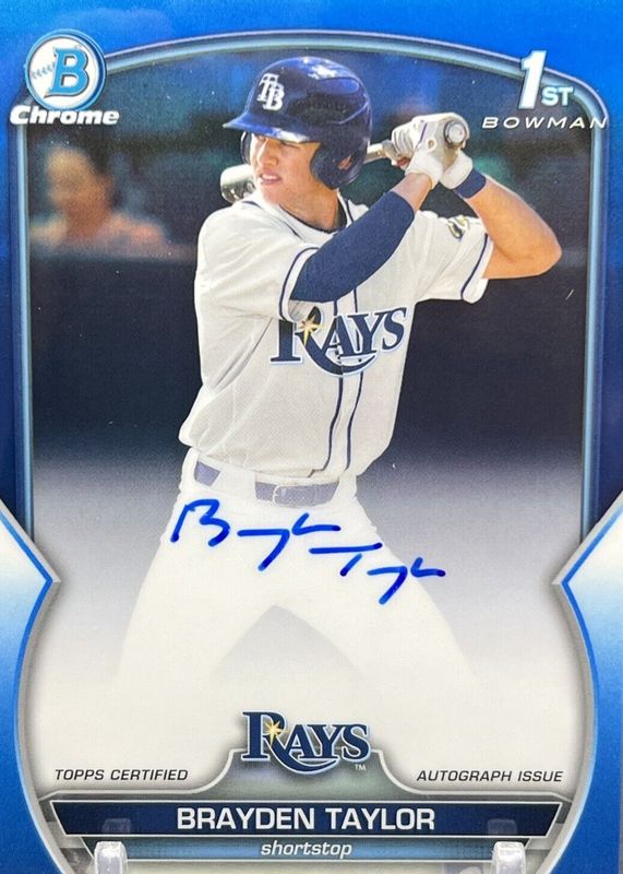 2023 Bowman Draft Brayden Taylor Chrome Auto Blue Refractor 1st #/150 Rays
