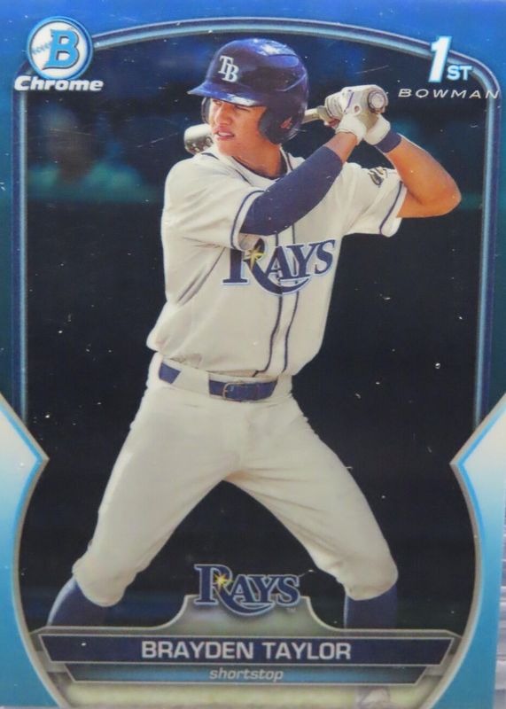 This card is 1 of 45 Brayden Taylor's card variations in the 2023 Bowman Draft set being tracked by Sports Card Investor, including Chrome (1st), Chrome Image Variation (Fielding), Chrome - Japan Refractor (1st), Chrome - Lunar Glow Refractor (1st), and Chrome - Pearl Refractor (1st).