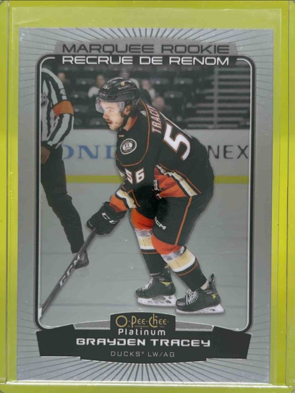 The Brayden Tracey 2022 O-Pee-Chee Platinum #213 Base Rookie card is 1 of 31 Brayden Tracey's card variations in the 2022 O-Pee-Chee Platinum set being tracked by Sports Card Investor, including Matte Pink, Neon Yellow Surge, Rainbow, Sunset, and Hot Magma /499.