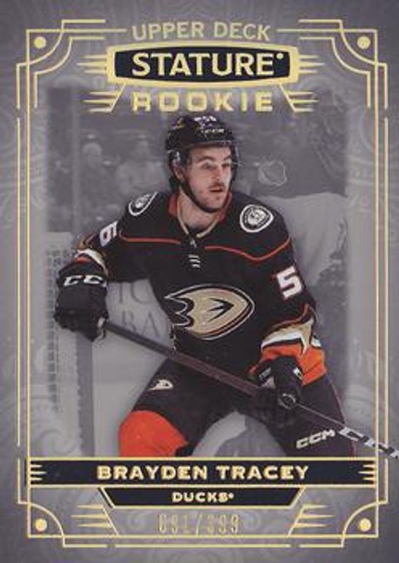 The Brayden Tracey 2022 Upper Deck Stature #184 Base /399 Rookie card is 1 of 43 Brayden Tracey's card variations in the 2022 Upper Deck Stature set being tracked by Sports Card Investor, including Green /99, Photo Variant /99, Red /75, Photo Variant Green /66, and Design Variant /65.