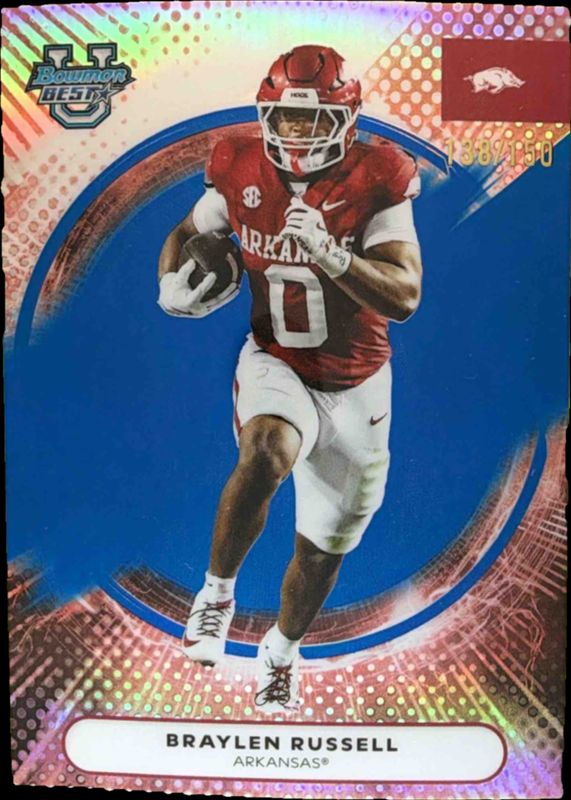 The Braylen Russell 2025 Bowman's Best #30 Blue Refractor /150 card is 1 of 29 Braylen Russell's card variations in the 2025 Bowman's Best set being tracked by Sports Card Investor, including Base, Refractor, Shimmer Refractor, Yellow Lazer Refractor /250, and Aqua Lava Refractor /199.