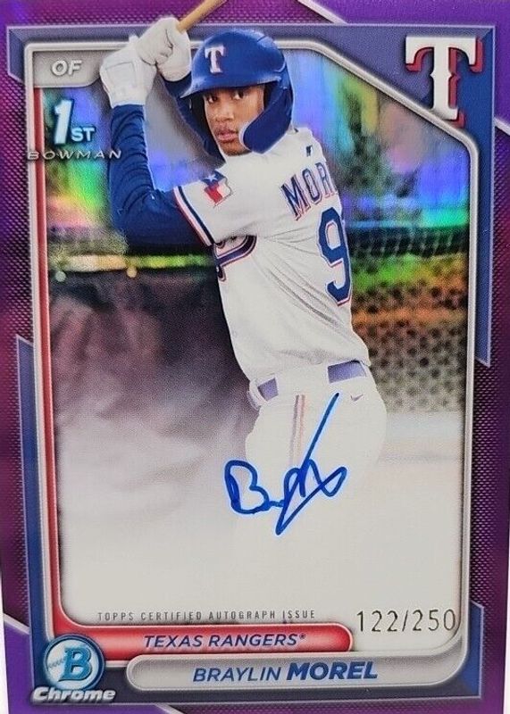 Braylin Morel 2024 Bowman Chrome 1st Bowman Purple Refractor Auto /250 TEX