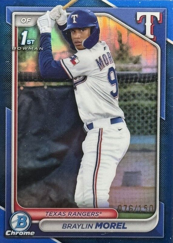 2024 Bowman Chrome Braylin Morel Blue Refractor 1st Prospect #10/150 Rangers