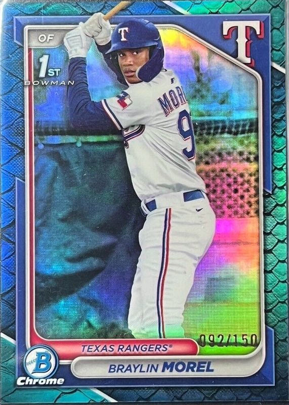2024 Bowman Chrome Braylin Morel Blue Reptilian Refractor /150 BCP-192 Rangers