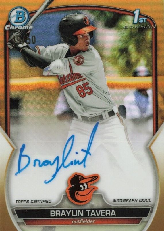 2023 Bowman Braylin Tavera Chrome Gold Refractor Auto /50 #CPA-BT 1st Orioles