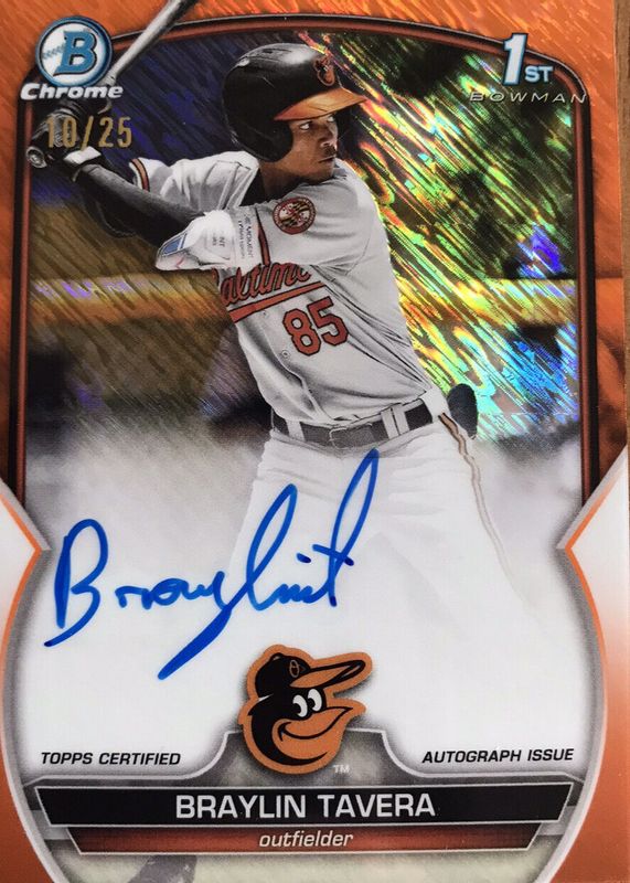 2023 Bowman Chrome BRAYLIN TAVERA 1st Bowman AUTO Orange Shimmer /25 SSP Orioles