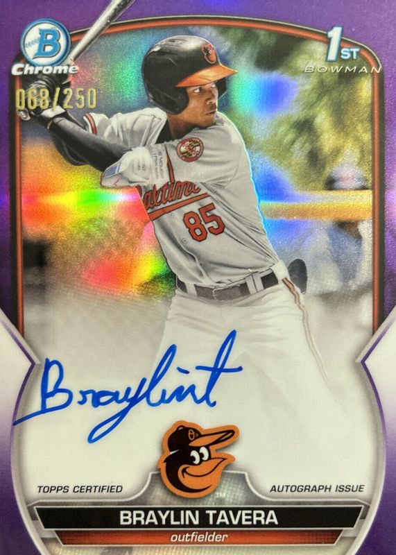 2023 Bowman Chrome Braylin Tavera Purple Auto /250 Baltimore Orioles SP RC 1st