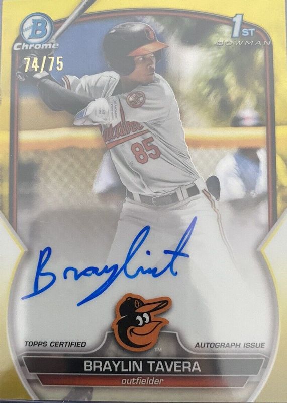 2023 Bowman Chrome 1st Auto Braylin Tavera Yellow Refractor # 22/75 Orioles
