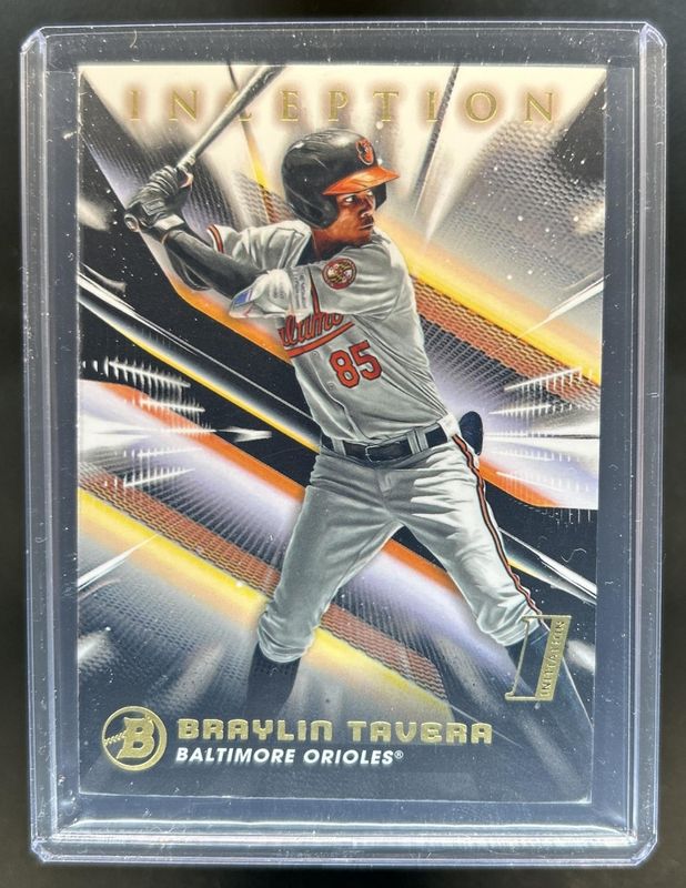 The Braylin Tavera 2023 Bowman Inception #16 Base card is 1 of 14 Braylin Tavera's card variations in the 2023 Bowman Inception set being tracked by Sports Card Investor, including Blue Foil /99, Blue Foil Pattern II /99, Fuchsia Foil /75, Gold Foil /50, and Gold Foil Electricity /50.
