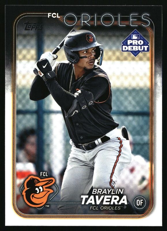 The Braylin Tavera 2024 Topps Pro Debut #PD-161 Base card is 1 of 26 Braylin Tavera's card variations in the 2024 Topps Pro Debut set being tracked by Sports Card Investor, including Fuchsia Foil /199, Sparkle Foil /175, Blue Foil /150, Green Foil /99, and Aqua Foil /75.