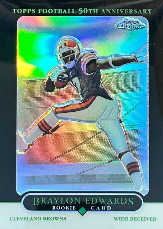 This card is 1 of 4 Braylon Edwards' card variations in the 2005 Topps Chrome set being tracked by Sports Card Investor, including Base, Refractor, and Gold X-Fractor /399.
