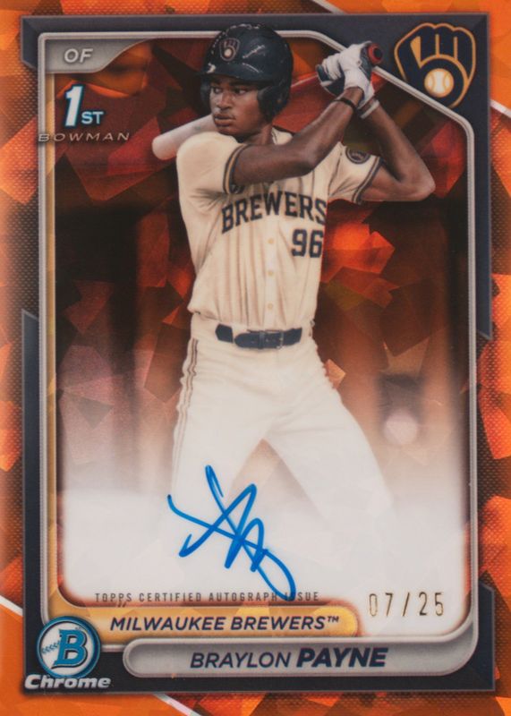 2024 Bowman Draft | Braylon Payne | 1st Bowman Orange Sapphire Auto /25 Brewers