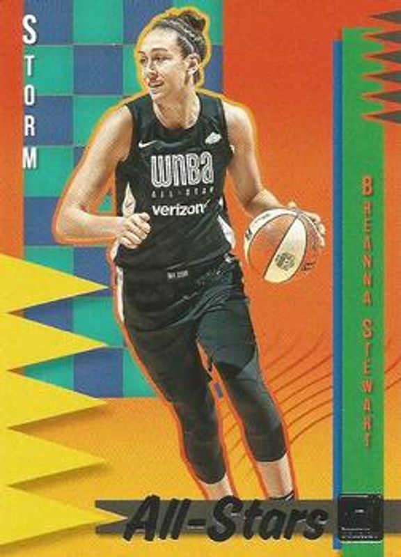 The Breanna Stewart 2019 Donruss WNBA #12 All Stars card is 1 of 29 Breanna Stewart's card variations in the 2019 Donruss WNBA set being tracked by Sports Card Investor, including Base, Optic, Optic Holo, Silver Press Proof /199, and Purple Press Proof /99.
