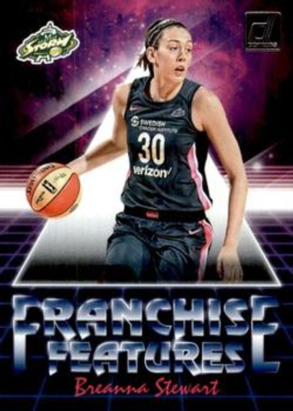 The Breanna Stewart 2019 Donruss WNBA #5 Franchise Features card is 1 of 29 Breanna Stewart's card variations in the 2019 Donruss WNBA set being tracked by Sports Card Investor, including Base, Optic, Optic Holo, Silver Press Proof /199, and Purple Press Proof /99.