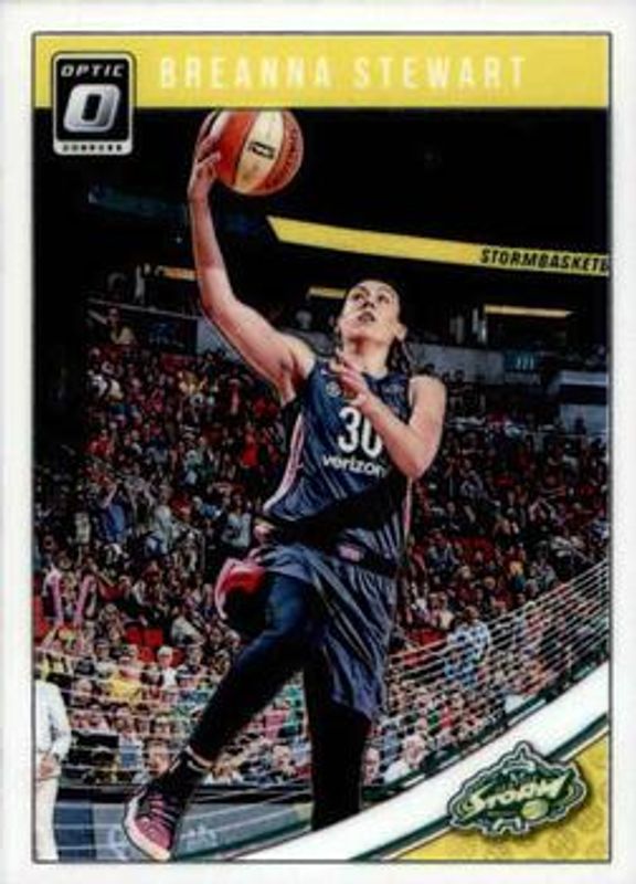 The Breanna Stewart 2019 Donruss WNBA #62 Optic card is 1 of 29 Breanna Stewart's card variations in the 2019 Donruss WNBA set being tracked by Sports Card Investor, including Base, Optic Holo, Silver Press Proof /199, Purple Press Proof /99, and Gold Laser Press Proof /10.