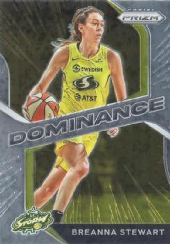 The Breanna Stewart 2021 Prizm WNBA #1 Dominance card is 1 of 79 Breanna Stewart's card variations in the 2021 Prizm WNBA set being tracked by Sports Card Investor, including Base, Green, Green Ice, Hyper, and Ice.