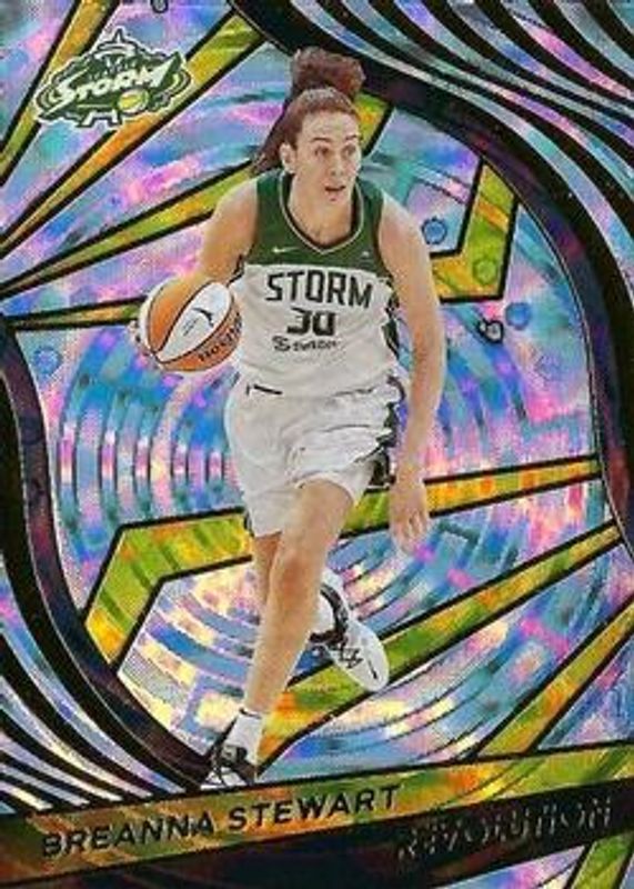 The Breanna Stewart 2022 Revolution WNBA #10 Fractal card is 1 of 31 Breanna Stewart's card variations in the 2022 Revolution WNBA set being tracked by Sports Card Investor, including Base, Astro, Galactic, Groove, and Impact /149.