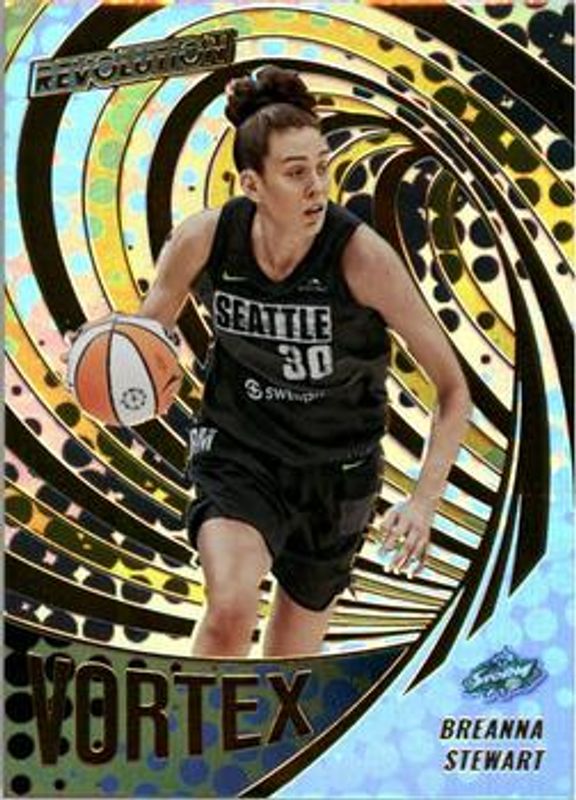 The Breanna Stewart 2022 Revolution WNBA #8 Vortex card is 1 of 31 Breanna Stewart's card variations in the 2022 Revolution WNBA set being tracked by Sports Card Investor, including Base, Astro, Fractal, Galactic, and Groove.