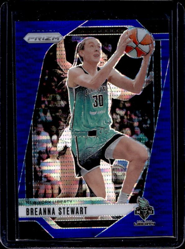 The Breanna Stewart 2024 Prizm WNBA #99 Blue Pulsar /199 card is 1 of 55 Breanna Stewart's card variations in the 2024 Prizm WNBA set being tracked by Sports Card Investor, including Base, Blue Velocity, Checkerboard, Green, and Ice.