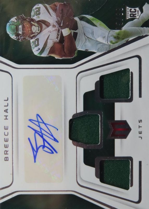 2022 Panini Chronicles Momentum Triple Jersey Auto Rookie BREECE HALL 37/99 Jets
