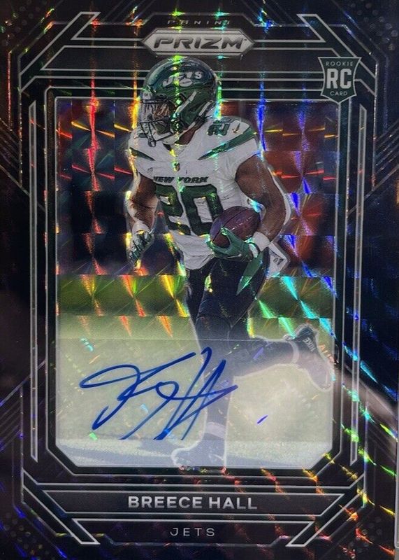 This card is 1 of 26 Breece Hall's card variations in the 2022 Chronicles set being tracked by Sports Card Investor, including Prizm Black, Score Premium Update, Prizm Black - Silver, Prizm Black - Red /99, and Prizm Black - Orange /75.