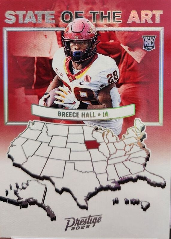 The Breece Hall 2022 Prestige #SA-13 State of the Art /(SSP) Rookie card in Raw condition has not changed in price in the last 30 days and was last sold for $17.50 .
