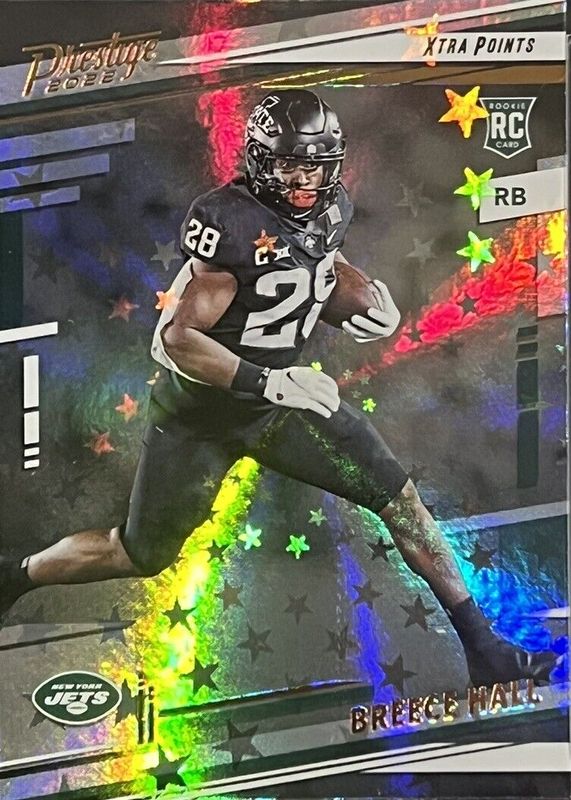 This card is 1 of 27 Breece Hall's card variations in the 2022 Prestige set being tracked by Sports Card Investor, including Base, Xtra Points Diamond, Xtra Points Dots, Xtra Points Galaxy, and Xtra Points Sunburst.