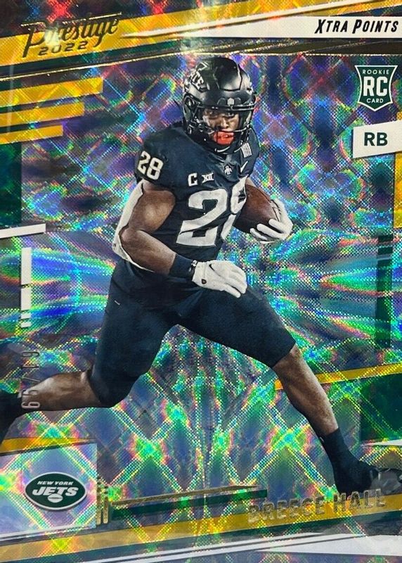 The Breece Hall 2022 Prestige #313 Xtra Points Gold /99 Rookie card in Raw condition has not changed in price in the last 30 days and was last sold for $2.00 .