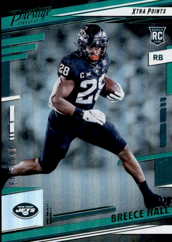 The Breece Hall 2022 Prestige #313 Xtra Points Green /249 Rookie card in Raw condition has not changed in price in the last 30 days and was last sold for $2.99 .