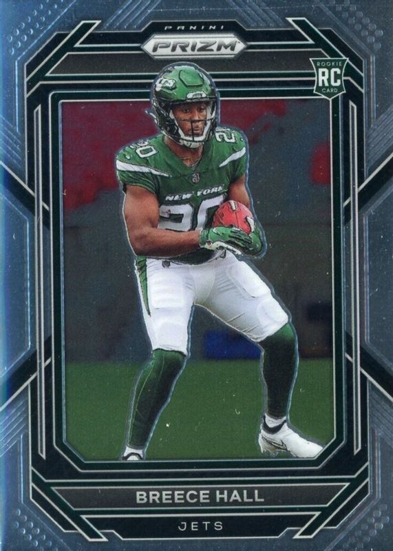 This card is 1 of 111 Breece Hall's card variations in the 2022 Prizm set being tracked by Sports Card Investor, including Green, Green Ice, Light Blue, No Huddle, and Orange Ice.