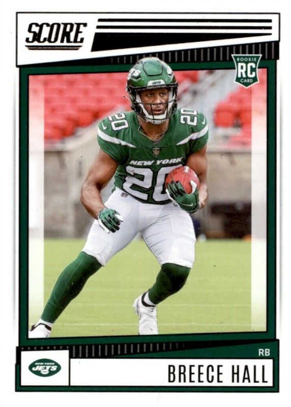 This card is 1 of 4 Breece Hall's card variations in the 2022 Score set being tracked by Sports Card Investor, including Hot Rookies, NFL Draft, and Protential.