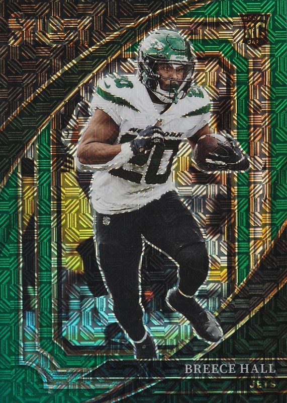 This card is 1 of 121 Breece Hall's card variations in the 2022 Select set being tracked by Sports Card Investor, including Club Level, Field Level, Suite Level, Club Level Black & Green Die-Cut, and Club Level Black & Red Die-Cut.