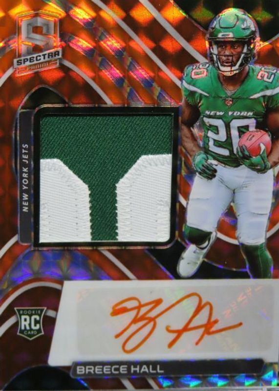 Breece Hall 2022 Spectra #213 Rookie Patch Auto - Neon Orange /15 RAW Price Guide