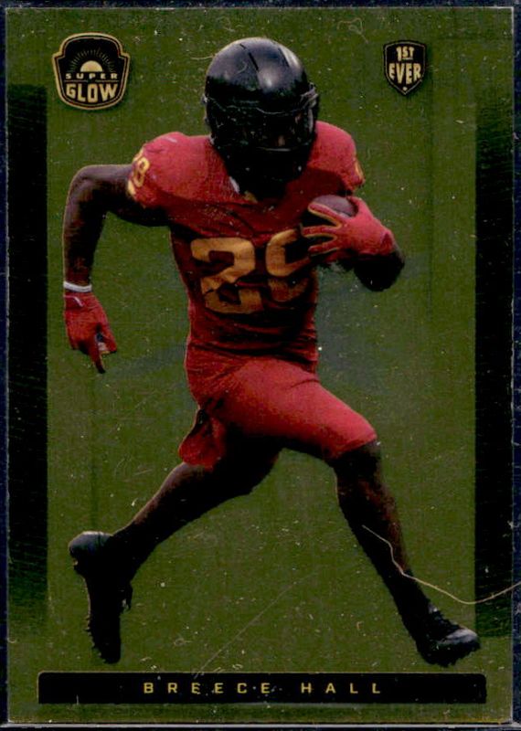 The Breece Hall 2021 Super Glow #24 Gold Foil card is 1 of 131 Breece Hall's card variations in the 2021 Super Glow set being tracked by Sports Card Investor, including Base, Blue Foil, Blue Glow, Gold Glow, and Mirror.