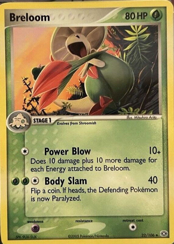 The Breloom 2005 EX: Emerald #022/106 Base card in Raw TCG (Near Mint) condition has moved up $0.11 (+3.8%) in the last 30 days and was last sold for $3.00 .