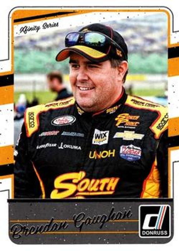 The Brendan Gaughan 2017 Donruss NASCAR #79 Base card is 1 of 19 Brendan Gaughan's card variations in the 2017 Donruss NASCAR set being tracked by Sports Card Investor, including Gold Foil /499, Blue Foil /299, Green Foil /199, Press Proof /49, and Artist Proof /25.