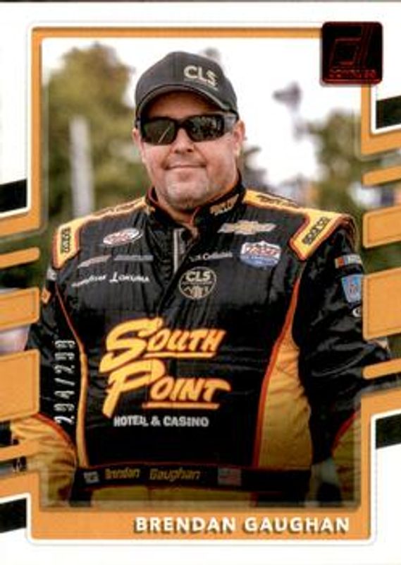 The Brendan Gaughan 2018 Donruss NASCAR #65 Red Foil /299 card is 1 of 14 Brendan Gaughan's card variations in the 2018 Donruss NASCAR set being tracked by Sports Card Investor, including Base, Gold Foil /499, Green Foil /199, Press Proof Gold /99, and Press Proof Holofoil /49.